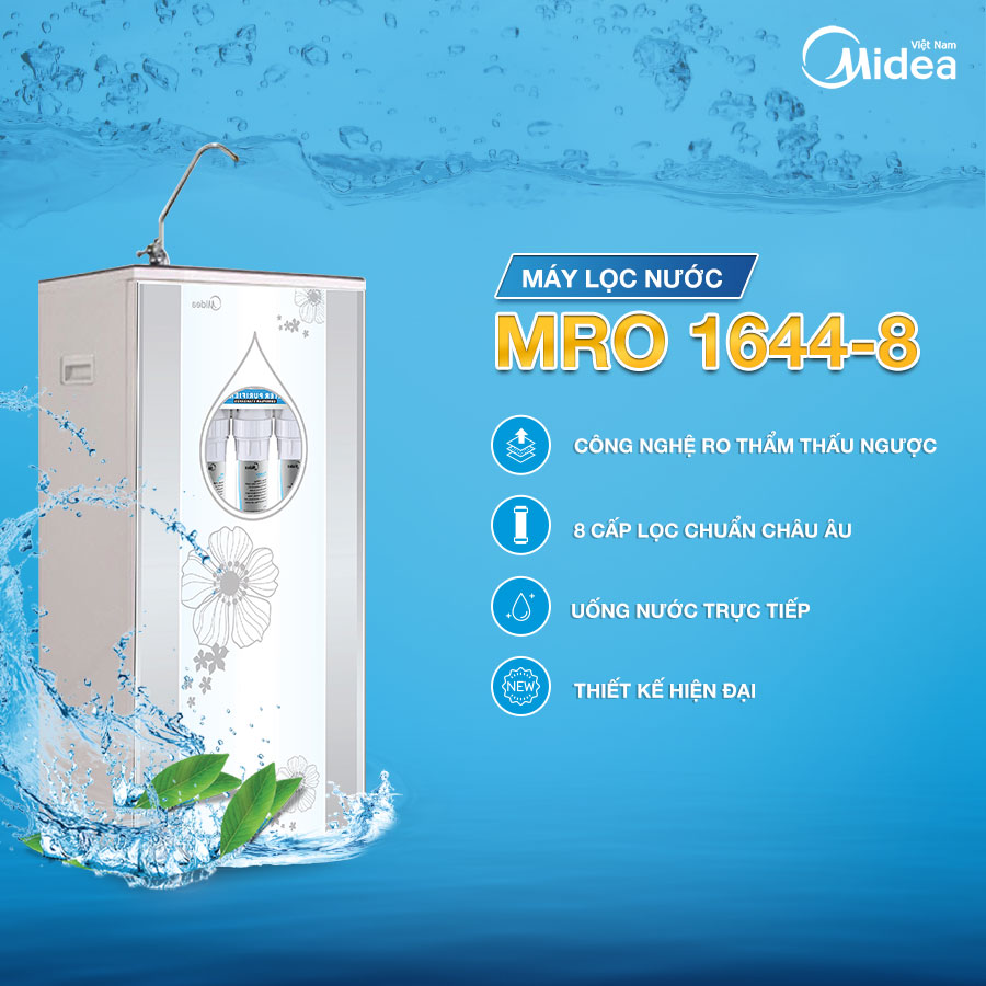 Máy lọc nước Midea MRO 1644-8 (VKW) sở hữu 8 cấp lọc cao cấp và thiết kế hiện đại, sang trọng