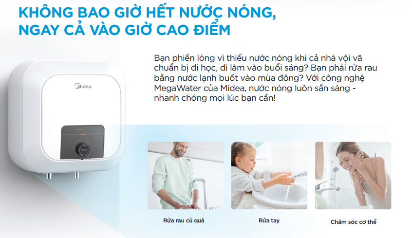 Nhờ đó, bình nóng lạnh Midea MWH15-25MVD1(VN)W đặc biệt phù hợp với: